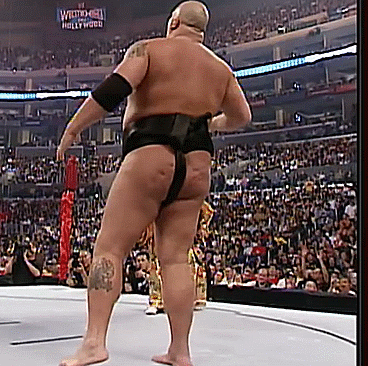 Big Show attempts to overpower sumo champion Akebono at WrestleMania 21