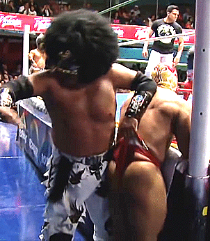 Pro Wrestlers pulling trunks, giving wedgies, stinkface, humiliation and wardrobe malfunctions…all the extra activity in the ring!