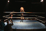 In the 90′s they introduced a number of huge bodybuilders as wrestlers…most weren’t great wrestlers but made great eye candy. Chip Thompson shown here in tiny yellow trunks, was an accomplished bodybuilder…but was used as a jobber. These wrestlers abused the poor inexperienced Thompson…at the end, Arn Anderson grabs Thompson’s trunks from the crotch and it’s a thing of beauty!